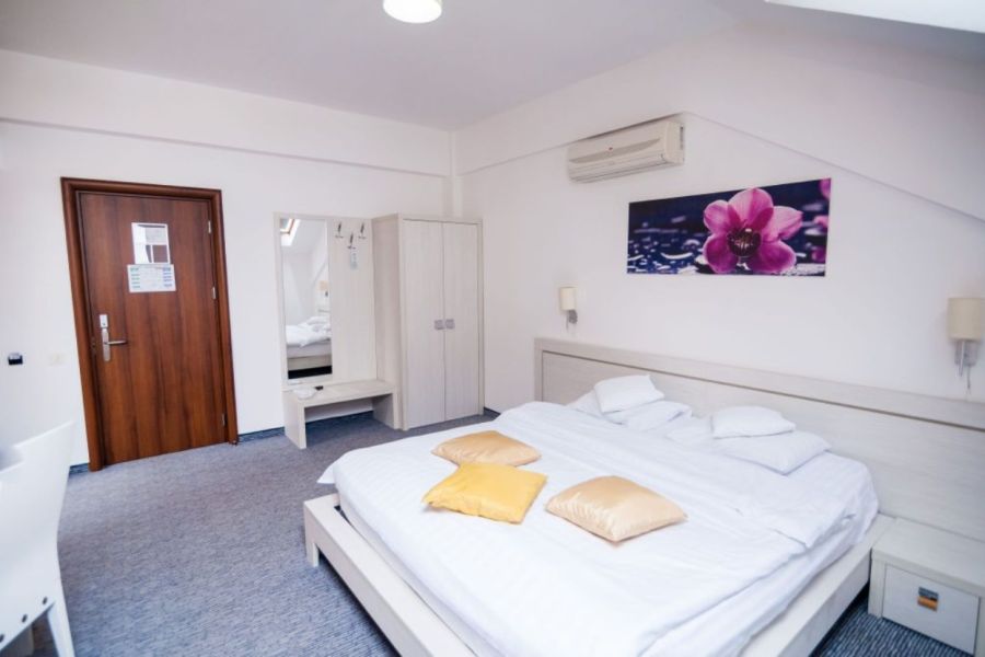 Va oferim o selectie de camere spatioase, camere twin, double si apartamente. Serviciile si facilitatile noastre de cazare sunt ideale pentru fiecare oaspete. Hotelul dispune de 60 de locuri de cazare in 30 de camere cu urmatoarea structura: 17 double cu twin beds, 6 double cu pat matrimonial, 1 junior suite si 6 apartamente. Toate camerele sunt echipate cu TV cu ecran plat, TV cablu, aer conditionat si minibar. Oaspetii nostri beneficiaza de asemenea si de produse cosmetice, uscatoare de par, halate de baie si papuci, iar serviciul de menaj este asigurat zilnic.