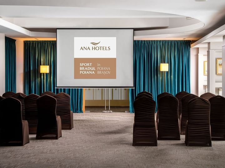 Cu un spațiu flexibil și capacitate de până la 280 de persoane, modernul centru de conferințe de la Ana Hotels Bradul include o sală multifuncțională, în mare parte cu lumină naturală și acces spre terasă. Complet echipată pentru evenimente business și speciale, sala dispune și de asistența oferită de specialiștii noștri.