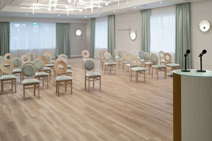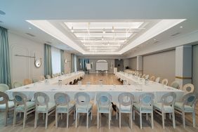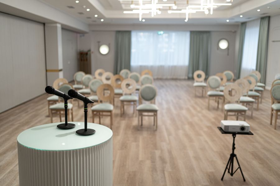 Sala de conferinte Celeste IV, parte din elegantul hotel Bavaria Blu de pe litoralul Mării Negre, este spațiul perfect pentru evenimente corporate, conferințe, mese rotunde, cine festive și întâlniri de business networking. Cu un ambient modern și servicii premium, Serenity oferă un cadru profesionist și rafinat pentru orice tip de întâlnire de afaceri. Salonul este complet echipat cu ecran de proiecție, videoproiector, sistem de sonorizare, microfon wireless și infrastructură audio-video performantă, asigurând condițiile ideale pentru prezentări, workshopuri, traininguri și paneluri. Configurația spațiului este flexibilă, adaptându-se formatului dorit: conferințe, mese rotunde, cine corporate sau evenimente tip networking dinner.