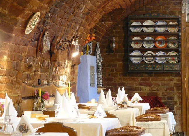 Pe o straduta care leaga turnurile vechii cetati de piata mare, in pivnita unei cladiri de secol XV isi face veacul un restaurant ardelenesc.