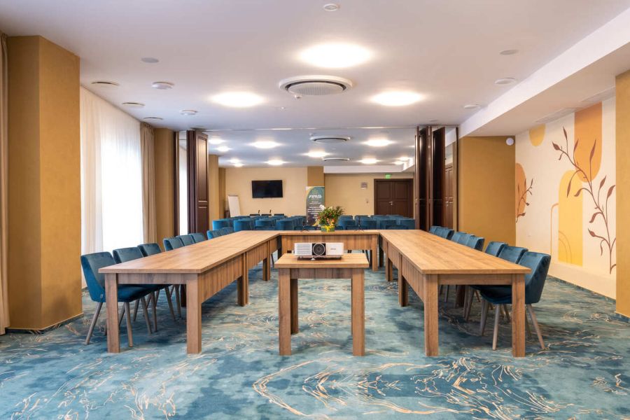 Dacă ne calci pragul în interes de business, îți punem la dispoziție o sală de conferințe încăpătoare cu toate dotările necesare pentru o bună desfășurare a întâlnirilor de afaceri, traininguri, workshop-uri, prezentări de produse sau simpozioane.