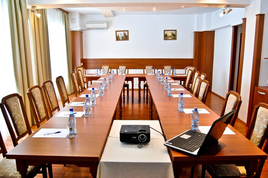 Hotelul Ema West va pune la dispozitie o sala de conferinta, modern amenajata si utilata la cele mai avantajose preturi de pe piata. Intalnirile de afaceri implica intotdeauna o mare responsabilitate. Indiferent de natura lui, evenimentul dumneavoastra trebuie sa fie un succes!