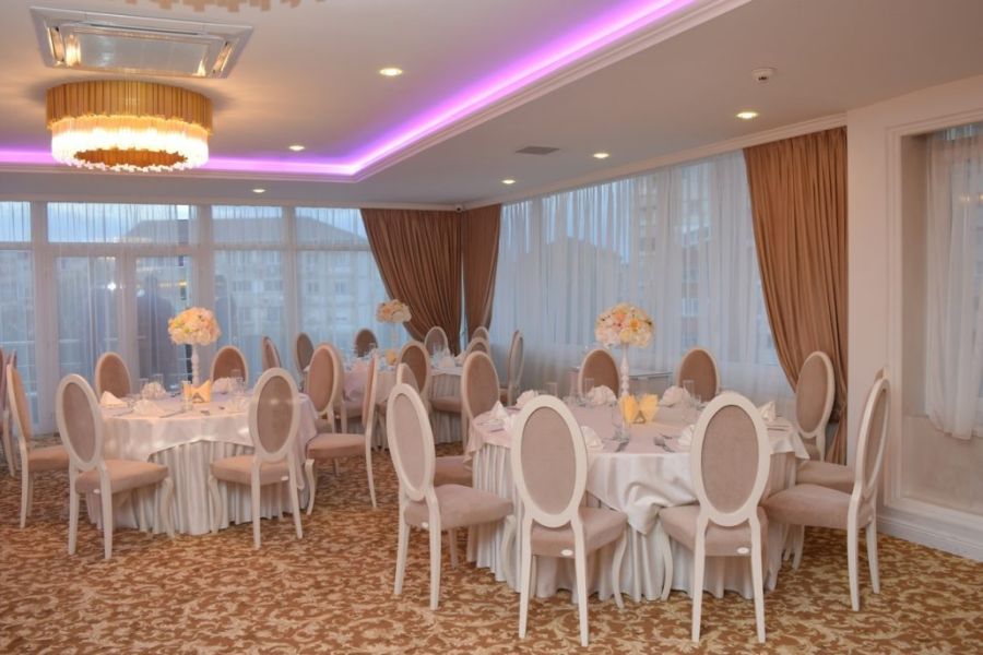 Dotată cu sistem audio, climatizare şi iluminat reglabil, sala oferă toate condiţiile de confort iar variantele de meniu prezentate pe site sunt o parte din preparatele delicioase pregătite pentru dumneavoastră şi invitaţi. Stabiliţi data evenimentului iar de reuşita lui ne vom ocupa noi. Poziţia centrală a restaurantului şi parcarea încăpătoare oferă privilegiul accesului comod şi rapid. Facilităţile sălii, meniul şi profesionalismul nostru garantează satisfacerea tuturor exigenţelor. Pentru un număr redus de invitaţi dispunem şi de o sală cu atmosferă intimă având 40 de locuri.