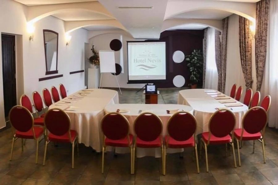 Salile de conferințe ale Hotelului Nevis sunt amenajate modern și elegant. De asemenea, atmosfera și calitatea aerului din încăperi pot fi ajustate în funcție de necesități, incaperile fiind prevăzută cu un sistem profesional de climatizare și de odorizare a aerului.