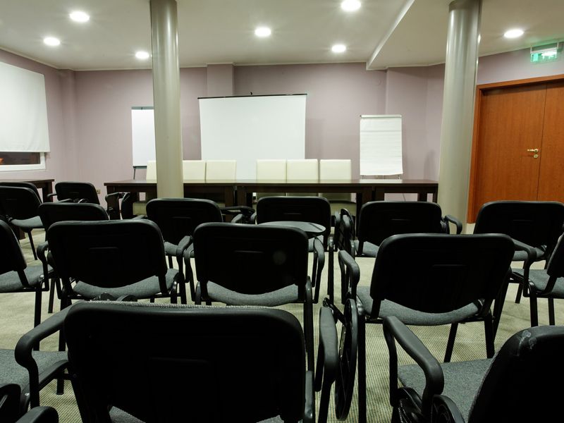 Sala de conferință polivalentă este locul perfect pentru întâlniri de afaceri și traininguri, având o capacitate de 180 de locuri. Este dotată cu ecran de proiecție, video-proiector, flipchart și sistem de sonorizare. În plus, sala beneficiază de o terasa proprie unde se pot servi gustări în cadrul unor cofee-break-uri sau chiar cine festive. Vă așteptăm să vă convingeți singuri de profesionalismul și dedicația cu care tratăm fiecare eveniment.