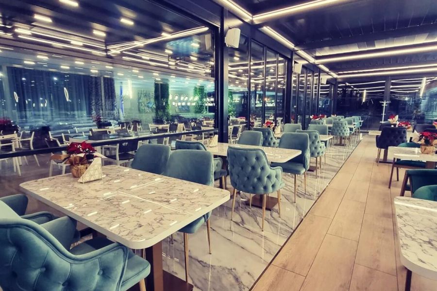Terasa Complexului Hotelier Wellness & Spa PERLA se distinge printr-o ambianță intimă și preparate delicioase. Cu o capacitate de 80 de locuri, terasa oferă cadrul perfect pentru momente de relaxare alături de prieteni, familie sau parteneri de afaceri. Se pot savura preparatele restaurantului, meniuri ușoare, salate, înghețate, băuturi răcoritoare, băuturi și cocktailuri pregătite cu îndemânare de profesioniști.