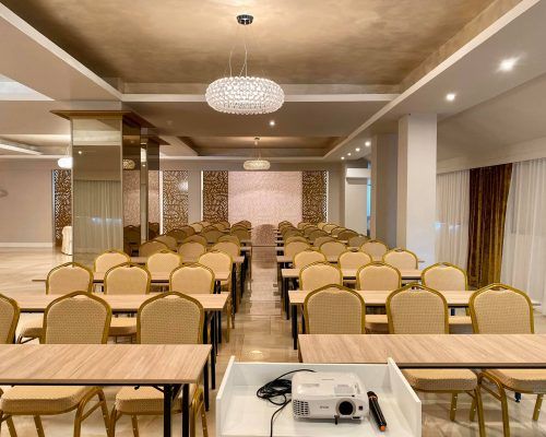 Salile cu o capacitate intre 25 si 350 de persoane, sunt dotate cu aer conditionat, wi fi, videoproiector, ecran de proiectie, flipchart, sunet, intregul echipament tehnic de care ai nevoie pentru un eveniment reusit.