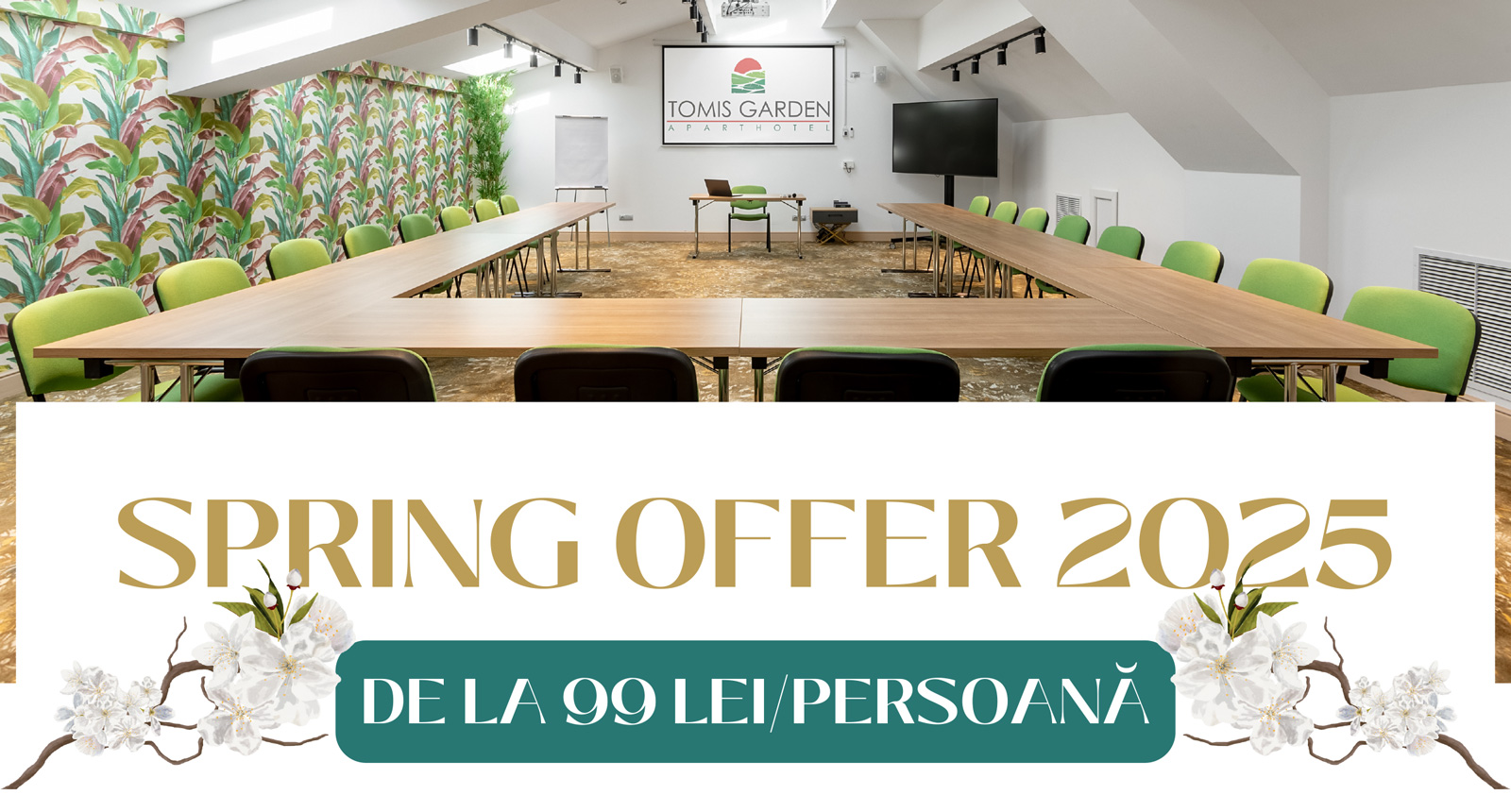 Primăvara începe cu noi oferte. Alege Centrul de Conferințe Tomis Garden București și bucură-te de oferta specială de primăvară, personalizată în funcție de bugetul și specificul evenimentului tău!