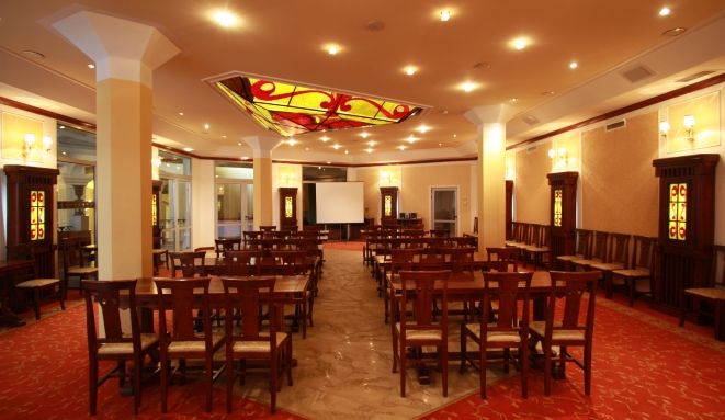 Cele 250 de locuri ale restaurantului ofera posibilitatea organizarii de mese festive: banchete, nunti, coktail-uri, Revelion. Specialitati si preparate traditionale maramuresene extrem de apreciate.