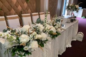 Aranjament gaspou masa prezidiu cu florile aduse de participanti