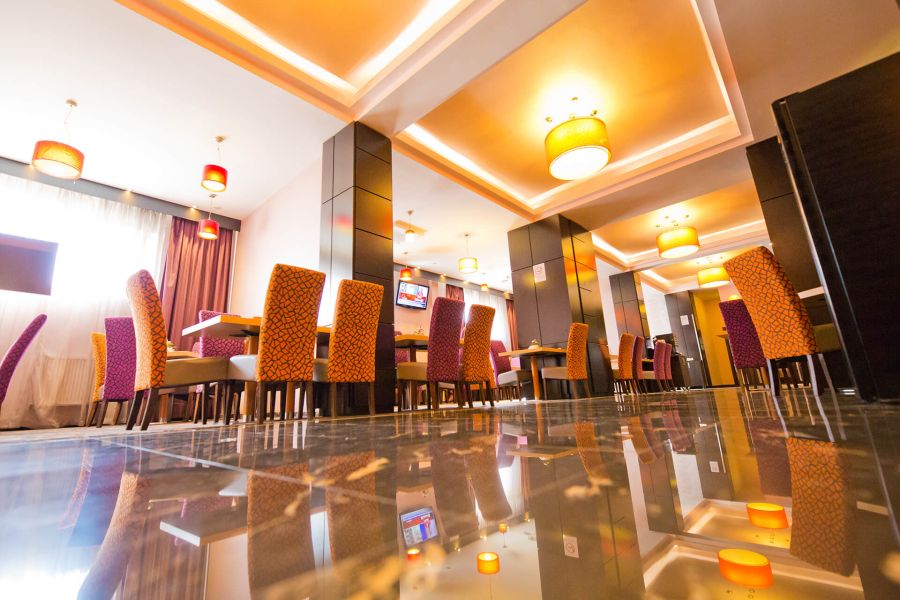 Sala impresionează prin atmosfera sa caldă și eleganța detaliilor, făcând fiecare eveniment desfășurat aici să devină o experiență de neuitat. Spațiul generos permite flexibilitate în organizarea evenimentelor, iar iluminatul ambiental contribuie la crearea unei atmosfere plăcute și festive.