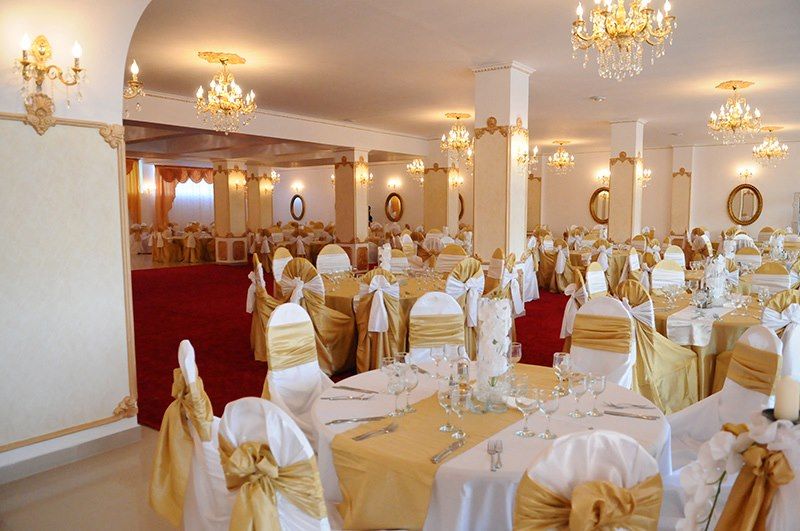 SALONUL GOLD este gazda perfecta a evenimentului dvs., fie el nunta, botez, masa festiva, petrecere privata, petrecere corporate, conferinta, team building, simpozion, receptie, cocktail, banchet, etc. Capacitatea salonului este cuprinsa intre 200 si 400 de locuri la mese. Calitatea, tinuta si servirea ireprosabila va garanteaza succesul.